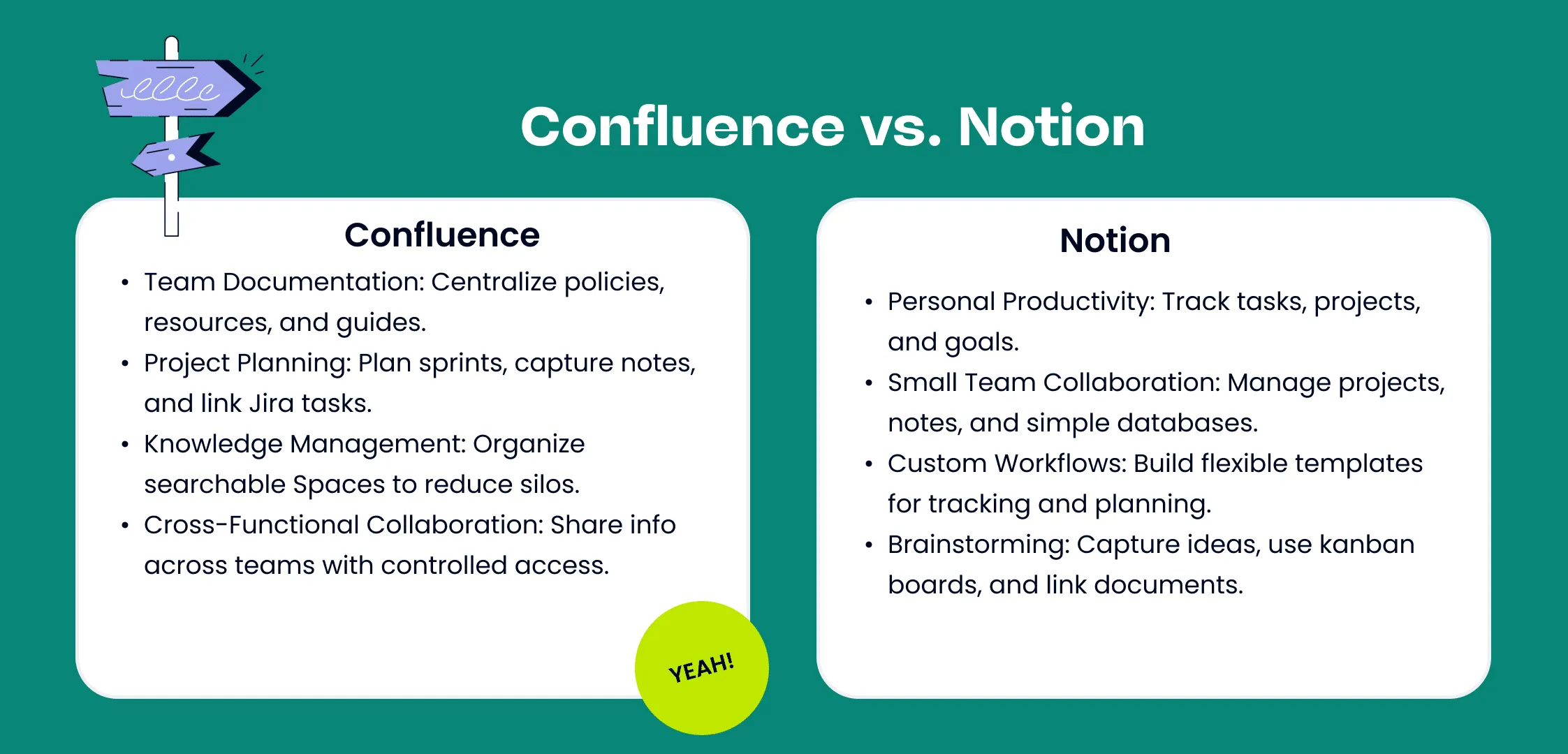 Teams today need effective collaboration and knowledge management tools to stay organized, productive, and on the same page. Two of the most popular options are Confluence and Notion, both offering unique approaches to managing workflows, documentation, and team collaboration. But which tool is right for your team? In this guide, we’ll compare Confluence vs. Notion in terms of features, integrations, pricing, and use cases, helping you make an informed decision for your organization.