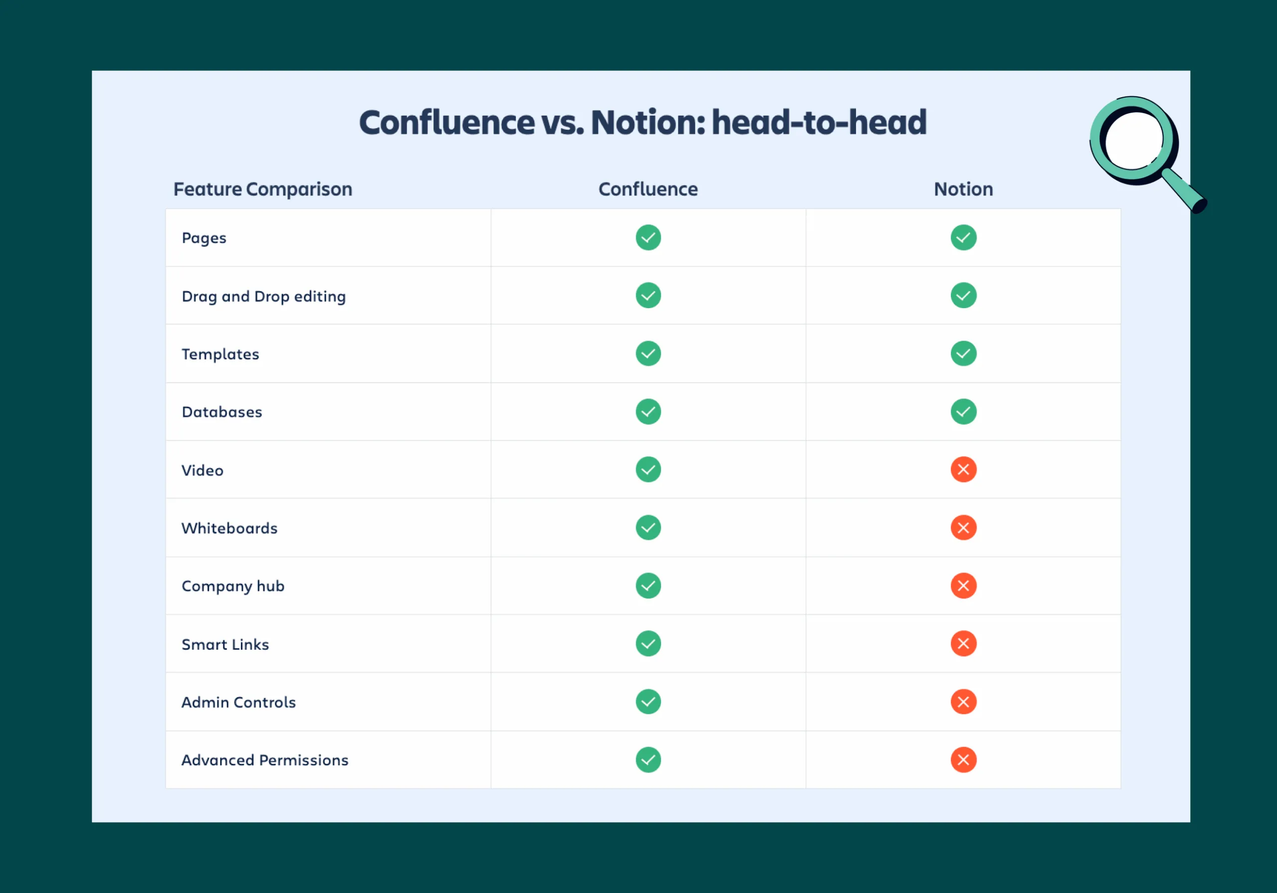 When it comes to enterprise-level collaboration, Confluence clearly provides a more connected, end-to-end solution compared to Notion.