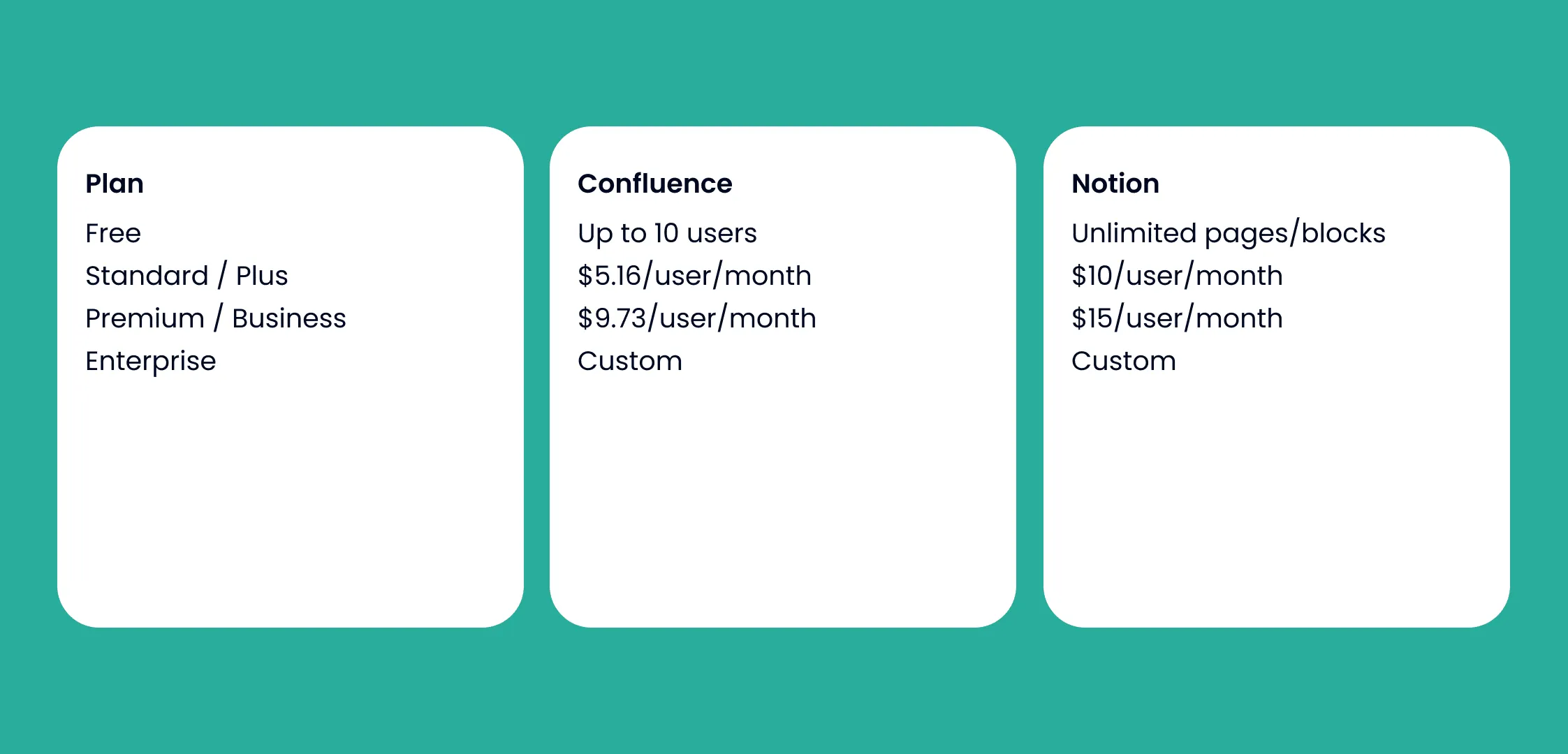 Pricing is an important factor when comparing Confluence vs. Notion.