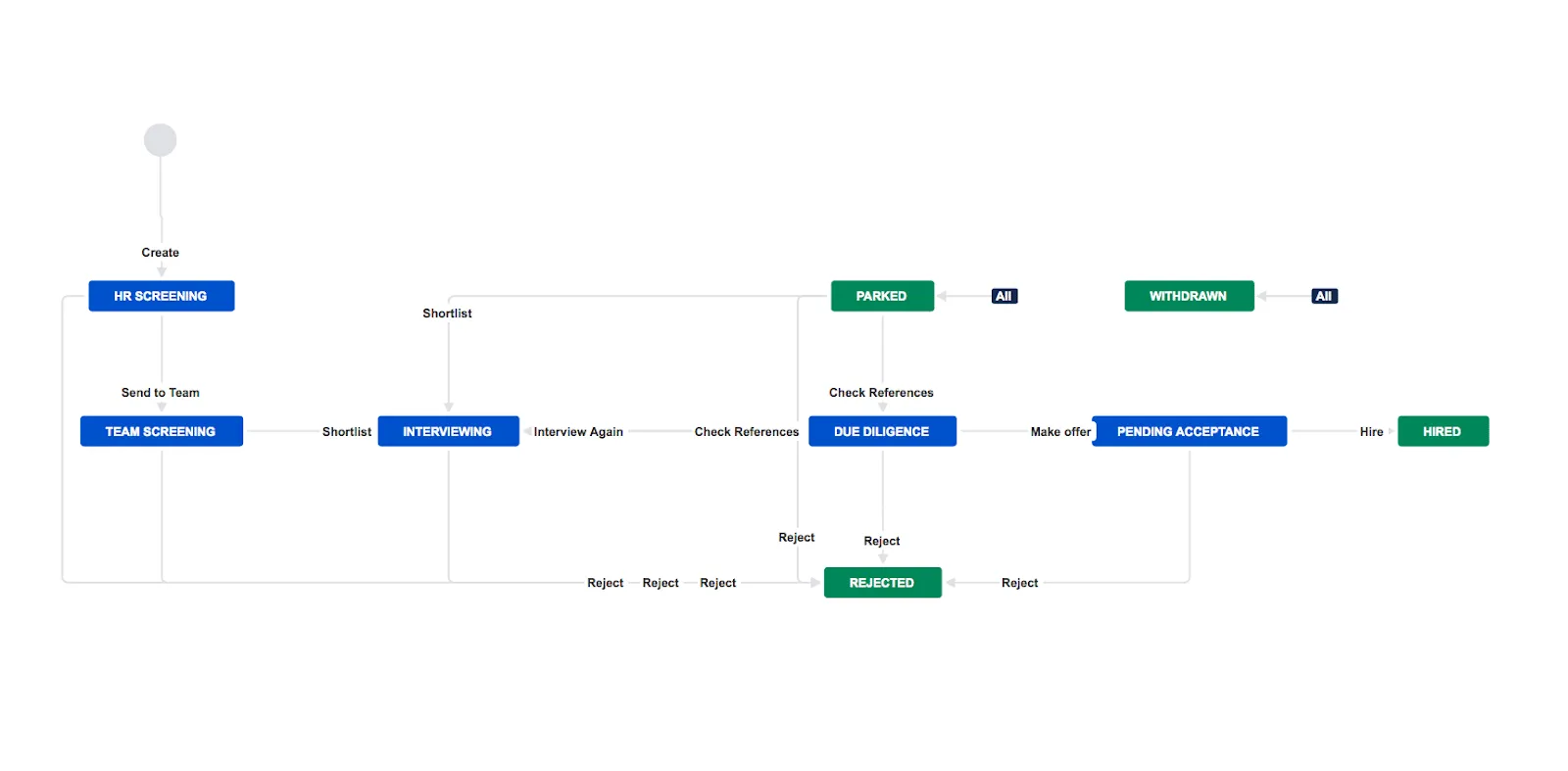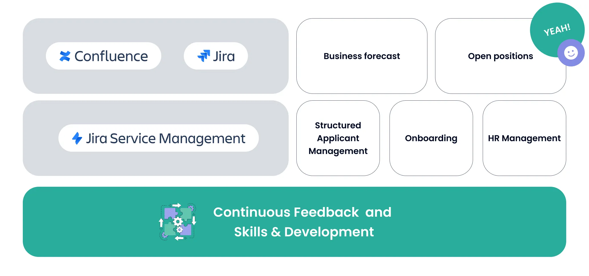 We recommend that Jira and Confluence be used to tackle when and why hiring needs from a business-level perspective. While JSM be used to focus on how and when to progress candidates through the recruitment process (i.e. Structured Application Management). Together, these tools cover the multifaceted aspects of the HR recruitment management process.