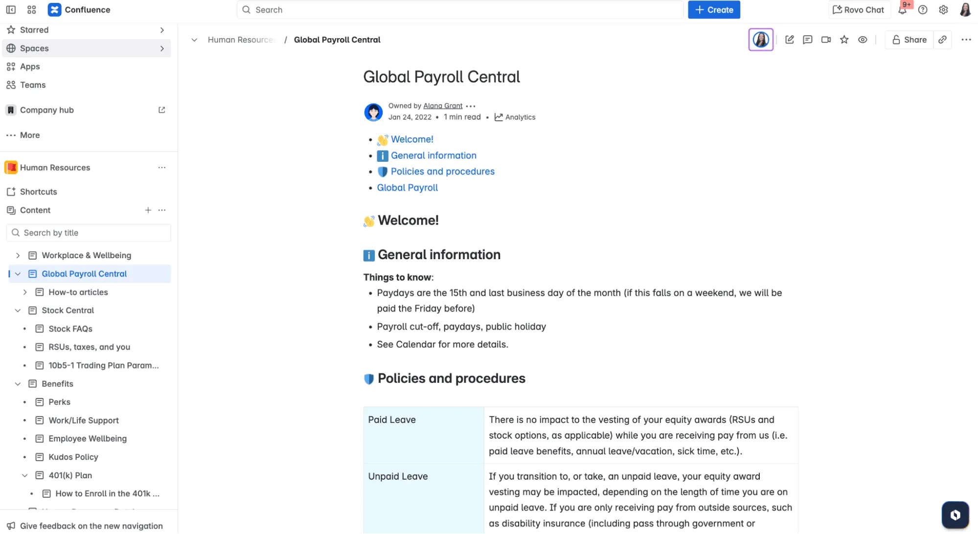 In this article, we’ll explore how teams can leverage Confluence to communicate HR policies and benefits, boost employee engagement with that info, and reduce repetitive questions — all while using innovative AI-powered features (i.e., Rovo Search) to help employees quickly find precisely what they need.