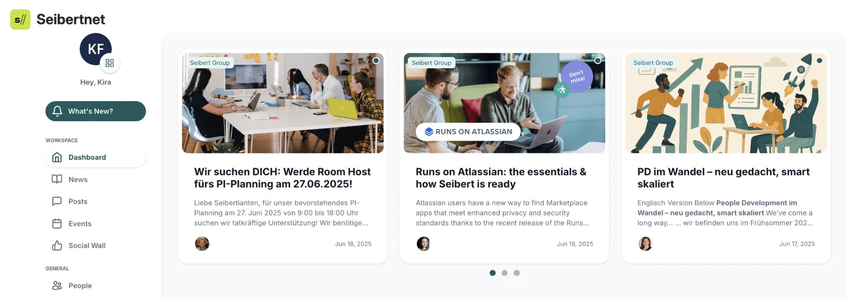 At Seibert, we’ve built exactly that: Seibertnet, our internal one-stop knowledge hub built in Confluence. It’s where our remote employees stay connected, aligned, and informed, without the noise or confusion of scattered tools.