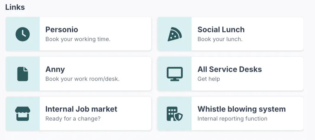 For new hires (or anyone onboarding to a new team), your hub can serve as their orientation portal. With just a few clicks, employees have access to useful links whether it’s to book working hours, access service desks, or discover what’s trending in your colleagues’ lunch breaks.