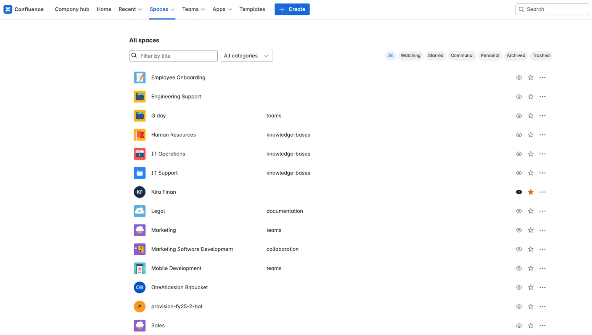For example, create Confluence spaces for: