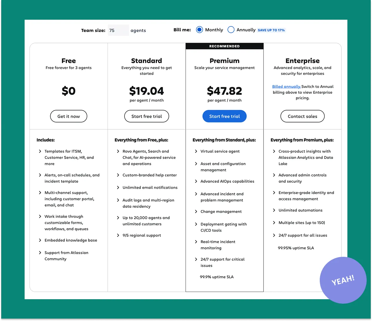 For small to mid-sized teams with straightforward needs, Standard offers an affordable entry point with reliable ITSM features and automation. Premium is best suited for organizations that are scaling quickly, managing high incident volumes, or requiring advanced AI, asset management, and stronger SLAs. Enterprise is ideal for large, global organizations that need multiple sites, advanced security, dedicated support, and long-term data retention.