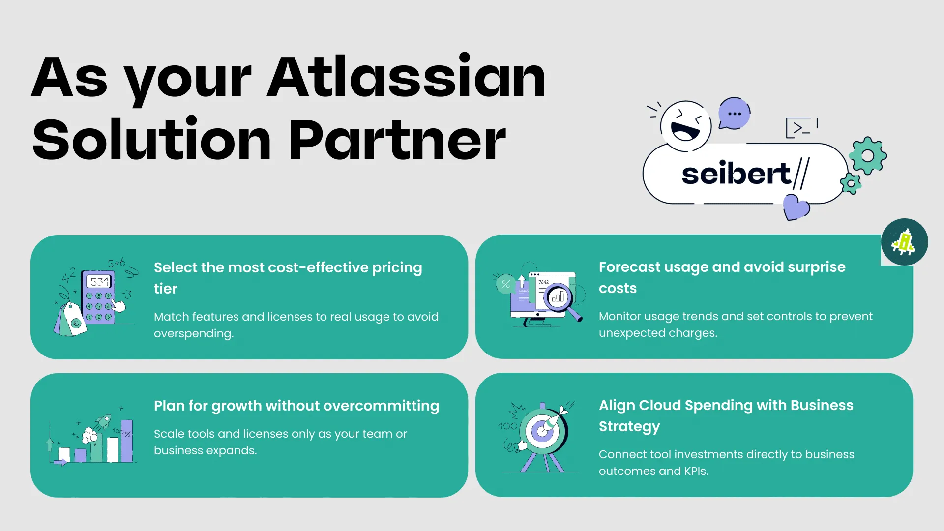 Atlassian’s usage-based, tiered pricing means you only pay for what you use, allowing you to forecast budgets more accurately and reduce the risk of over- or under-investing. But with flexibility comes complexity, and that’s where we help you turn flexibility into financial clarity.