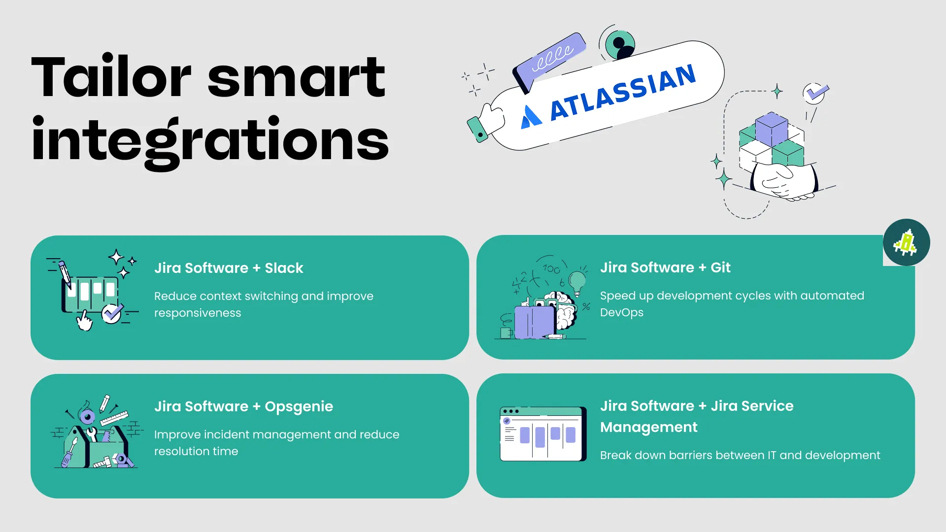 - Jira Software + Slack – Reduce context switching and improve responsiveness